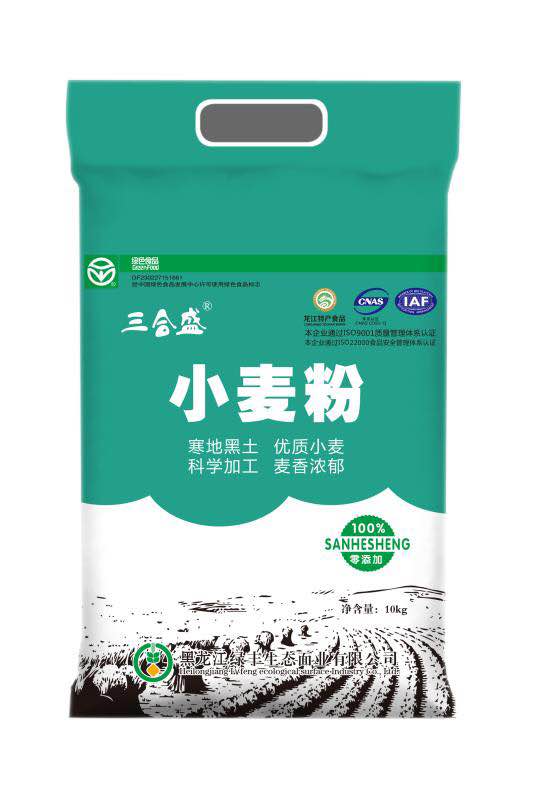 产品中心 product center 沙子面沙子面 饺子粉饺子粉 雪花粉雪花粉 特精粉特精粉 麸星粉麸星粉 全麦粉全麦粉 富硒面粉富硒面粉 其 他其 他 产品名称 :10kg小麦粉 配料:小麦质量等级:标准生产日期:见包装封口处保质期:十二个月生产许可证编号: SC10123022731519执行标准: GB/1355产地:黑龙江.富裕贮存方法:放置阴凉、通风干燥处生产制造:黑龙江绿丰生态面业有限公司工厂地址:黑龙江富裕经济开发区全国服务热线: 0452- 8900008邮箱: lfstmy@163.com网址: www.绿丰.com